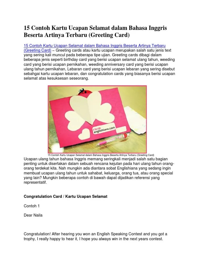 Kartu ucapan selamat ulang tahun/ happy birthday (part 1). Inilah surat ucapan selamat ulang tahun yang saya maksud. Bila ingin spesifikasi nama, bisa tulis di keterangan (contoh: Di bawah ini adalah beberapa contoh surat dalam bahasa inggris yang berisi ucapan selamat ulang tahun untuk teman: Fungsi kartu ucapan greeting card.
